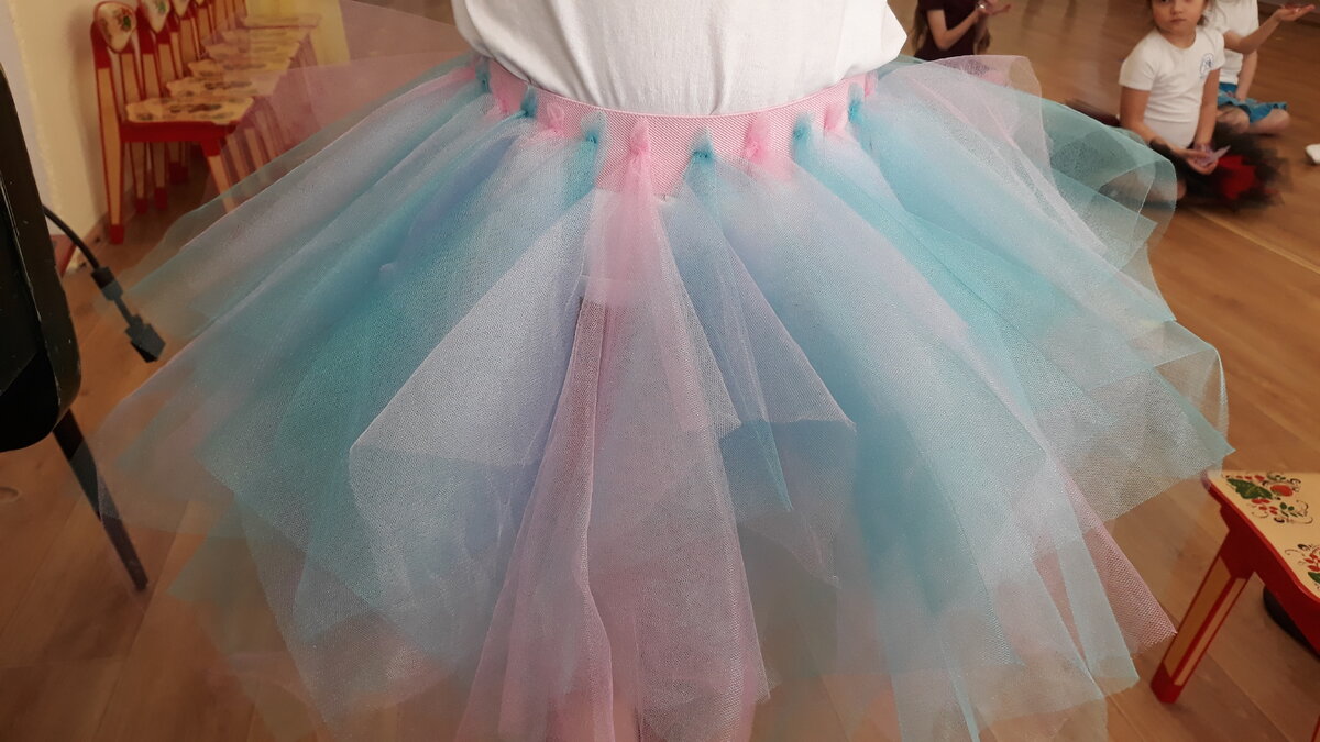 Идея не моя, подсмотрела на сайте интернет продаж. Делюсь. 16-18 равных квадратиков фатина (т.н. сетки) берутся по центру и пришиваются этой точкой пришивается к эластичной резинке . Малышкам -квадратики поменьше, девочкам подготовительной группы -побольше. И получается лёгкая и воздушная юбочка. Причём, работы там практически на час даже начинающей мастерице. Сегодня нарядили некоторых девчушек, и они смотрелись как Дюймовочки на цветочках. Я песню "Мотылёк" учу к конкурсу с ними. Вот и надумала таким методом образ подчеркнуть. Безусловно, было б неплохо, если б юбочки были одинакового цвета. Но настаивать на этом я не решилась. Каждая мама сшила своей дочке , как сочла нужным. И спасибо им за это! Всегда рада видеть на своём канале СЛОЖИЛОСЬ САМО всех, кто интересуется моим творчеством.Заходите. Делитесь вашими мнениями. Спрашивайте. Стараюсь ответить максимально быстро.