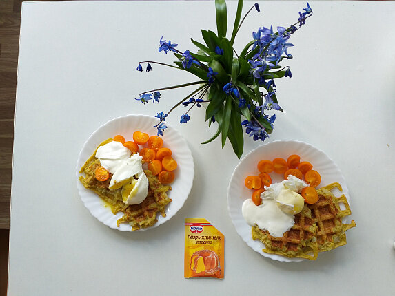 Легкий рецепт вкусного обеда! О рецепте Сложность: Легко Количество порций: 4 Время приготовления: 45 минут Ингредиенты Разрыхлитель теста Dr.Oetker - 0.5 ч. л. Картофель - 350 г Яйцо - 1 шт. Сметана - 100 г Мука - 2 ст. л. Соль - 0.5 ч. л. Сыр - 30 г Сливочное масло - 20 г Морковь - 50 г Лук - 30 г Способ приготовления 1. На мелкой терке натрите сырой картофель и сырую морковь. Затем слегка отожмите картофель, чтобы убрать лишнюю жидкость. Лук меленько порежьте ножом. И положите все эти ингредиенты в глубокую миску. 2. На следующем этапе добавьте в миску с картофелем, морковью и луком натертый на мелкой терке кусочек сыра, 1 яйцо, 100 грамм сметаны, 20 грамм растаявшего сливочного масла, 2 ст.л. муки, 0.5 ч.л. разрыхлителя "Др. Оеткер", соль и перец по вкусу. В итоге должна получится масса жиже, чем на драники. Если масса выходит суховата, добавьте еще немного сметаны. Но не переусердствуйте. 3. Включите вашу электровафельницу в розетку. Хоть у меня на вафельнице и антипригарное покр