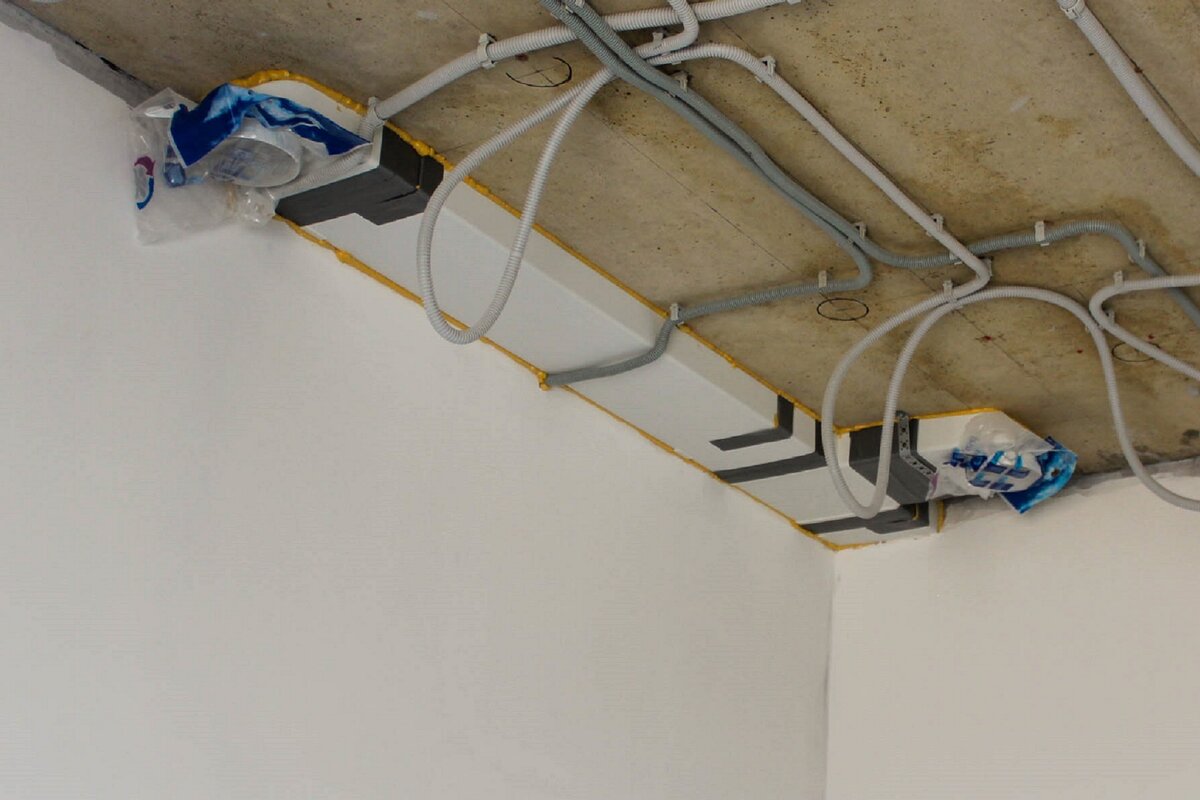Рассказ пойдет об установке воздуховодов и подключении их к вертикальным вентиляционным каналам. О них я писал туточки. При проектировании системы вентиляции необходимо делать соответствующий расчет для конкретных помещений и учитывать множество факторов. Но мы-то с вами самостройщики и подходим к решению вопроса по-простецки. Кто нет, тот крутой перец. Требовалось сделать две ветки воздуховодов: из кухни длиной 1,5 м и санузла второго этажа длиной 5 м. В качестве воздуховодов выбрал пластиковые прямоугольного сечения 60х204 мм. Так задумал исходя из габаритов, удобства монтажа и стоимости. Да, каналы круглого сечения более эффективны, но «съедают» высоту помещения. Если взять воздуховоды различной формы, но одной площади сечения, то разница в высоте составит 2,26 раза. Например, прямоугольный воздуховод 60х204 мм примерно соответствует по площади сечения круглому диаметром 125мм, но соотношение по монтажной высоте 125/60. Для вытяжки газовой плиты такого сечения вполне хватит, осн
