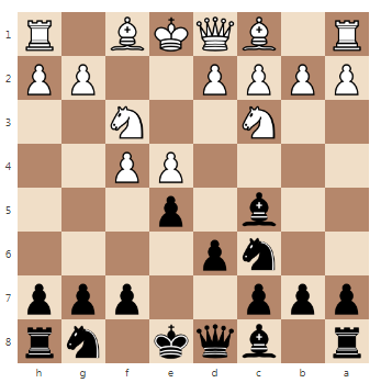 Спешу признать свою неточность, сделанную в публикации «О комбинации «мат Легаля», лишившей знатоков 3 миллионов рублей (часть 3)». В ней я говорил, что «мат Легаля» чёрные ставили лишь однажды – автором такого фантастического мата был четырёхкратный чемпион Болгарии Георгий ГЕШЕВ, обыгравший неизвестного петербургского любителя. Однако если рассматривать эту комбинацию не с позиции классического оригинала, а как более расширенную «тему Легаля», то предводители чёрных фигур «отличались» далеко не один раз. Именно таким случаям посвящена сегодняшняя подборка партий. Партия Оудхойден – де Броиз, 1934 г. 1. е2-е4 е7-е5 2. Кb1-сЗ Кb8-с6 3. f2-f4 Сf8-с5 4. Кg1-f3 d7-d6 5. f4-f5? Лучше было стандартное продолжение в Венской партии 5. Сf1-c4. 5...Кg8-f6 6. h2-h3? Белые опасно ослабляют чёрные поля на своём королевском фланге – в дальнейшем именно это станет одной из причин дебютной катастрофы. Ходы крайними пешками вообще рекомендуется делать только в случаях крайней необходимости, особе