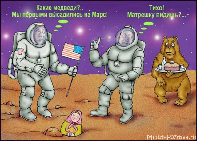 Попали на необитаемый остров: немец, американец и русский. Сделали невод, поймали золотую рыбку. Рыбка говорит: — Отпустите, а я каждому по три желания исполню. Немец говорит: — Хочу счет в банке, Мерседес и верни меня домой. Американец говорит: — Хочу большой дом, жену верную и верни меня домой. А русский говорит: — Хочу ящик водки, ящик закуски и верни всех моих друзей обратно! Террористы похитили работников оборонных предприятий: американца, немца и русского. После часовой пытки американец объяснил устройство крылатой ракеты. После двухчасовых пыток немец выдал схему новейшего истребителя. После недельных пыток русский нарисовал гайку в трех проекциях.