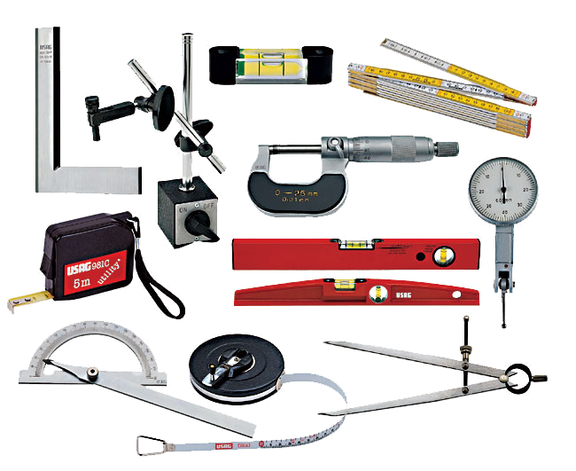 Без них невозможно представить выполнение даже самой простой как строительной, так и отделочной операции. Рулетка. Данный вид измерительного инструмента – это лента из тонкой гибкой стали, заключенная в металлический или пластмассовый корпус. Сматывается лента автоматически при нажатии кнопки (фиксатора). Длина колеблется от 100 до 1000 см. Рулетки большой длины снабжены пластмассовой или стальной ручкой П-образной формы. Деления нанесены через каждый миллиметр. Цифрами отмечены сантиметры и десятки сантиметров. Рулетка используется для измерения прямолинейных величин. Рулетка измерительная с магнитным крюком Складной метр. Применяется для измерения вертикальной и горизонтальной кладки.