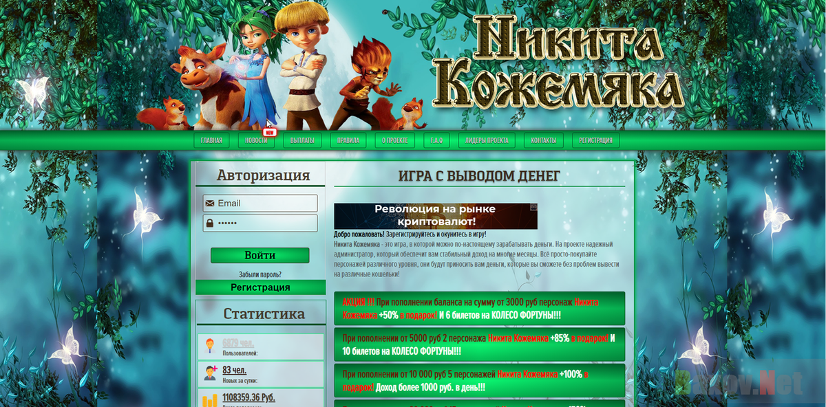 Сайт Никита Кожемяка - это стандартная пирамида, замаскированная под экономическую игру. А другими словами онлайн-пылесос для выкачивания денег из кошельков доверчивых пользователей. Мы категорически не рекомендуем людям принимать участие в подобных проектах, а тем более рассматривать их как способ получения финансового дохода.