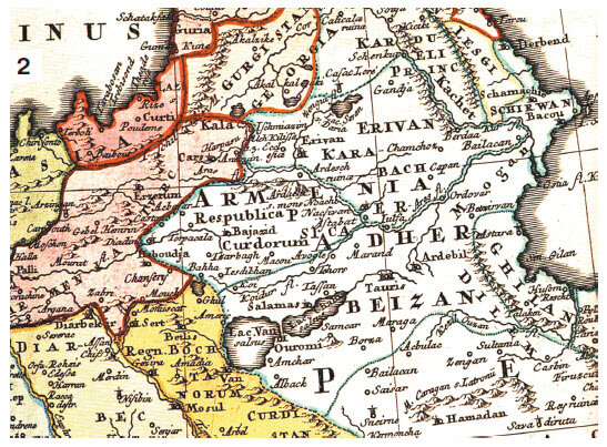 На карте вилайет Армения (Ermani Vil) включает в себя Арзум (Эрзерум), Малазкерт, Ван, Битлис, Баисит (Баязет), Хотур и др. Место расположения озера Ван перенесено на восток, что нарушает соотношение городов и географических мест. Например, Карс, который находится в 150 км к северо-западу от Баязета, обозначен на его востоке, на расстоянии 100 итальянских миль.