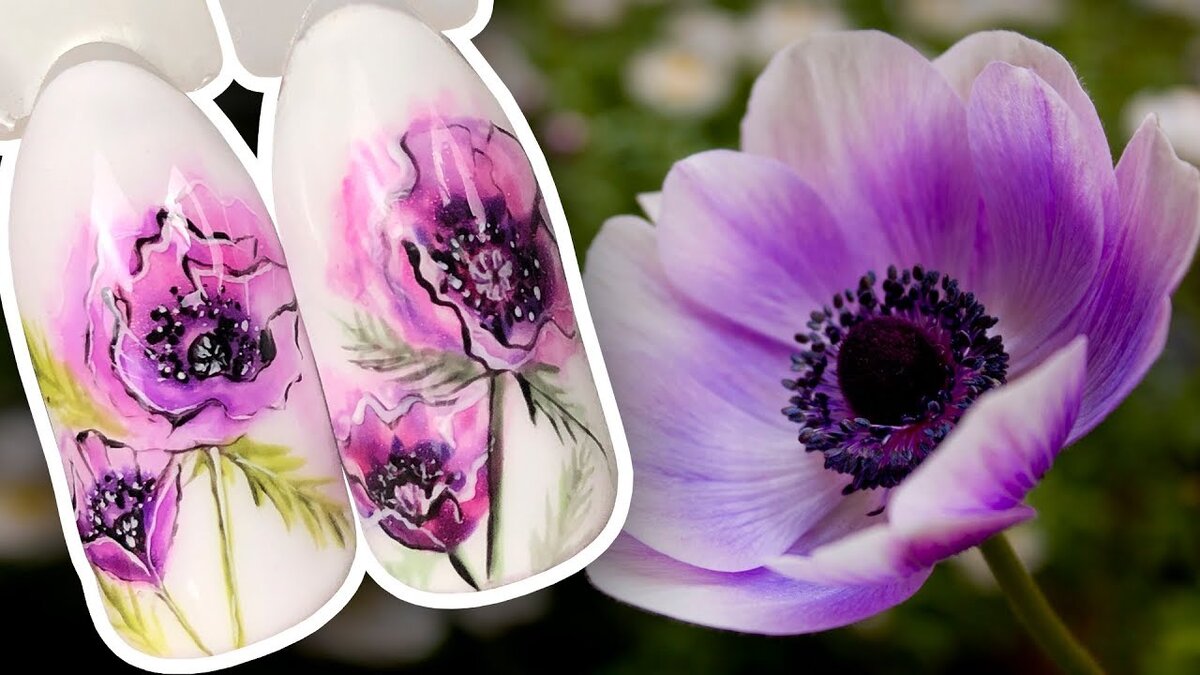 🌸 Фиолетовые Маки 🌸 Цветочный Дизайн Ногтей Рисунок Гель-лаком для Весеннего Маникюра Поэтапно