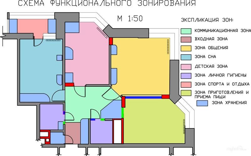 - предварительное распределение бытовых процессов и выявление соответствующих зон для них;
