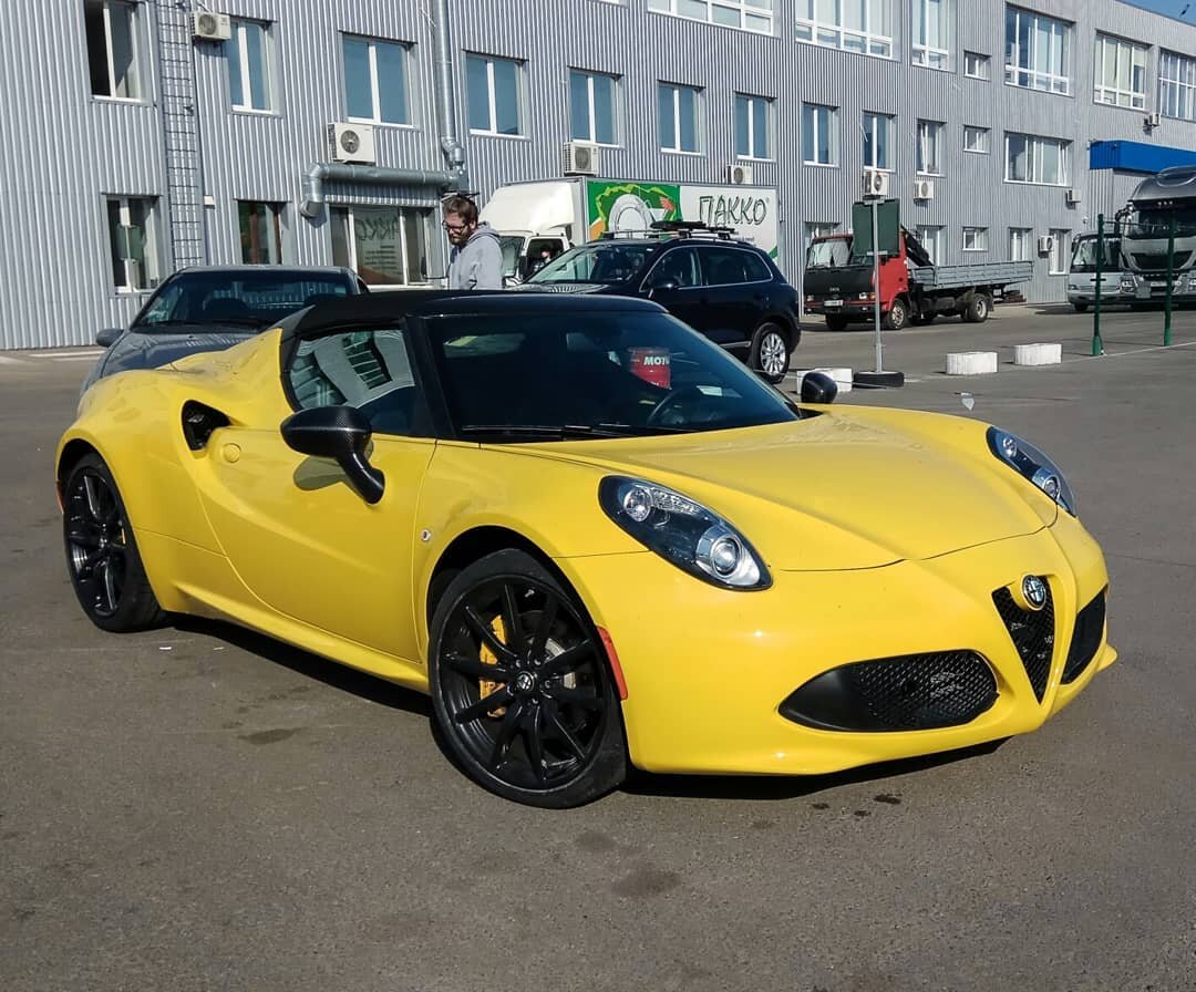 В Киеве засняли спорткар Alfa Romeo 4C Spider. Среднемоторный итальянский кабриолет – первый в Украине, хотя у нас также есть купе 4С. Фото: Max Grunskiy Alfa Romeo 4C Spider – одна из самых дешевых в мире моделей с карбоновым монококом. Весит автомобиль меньше тонны. Двухместный спорткар Альфа Ромео оснащен 1,75-литровым бензиновым турбомотором на 240 л. с. и 6-ступенчатой трансмиссией с двумя сцеплениями. Разгон до 100 км/ч занимает 4,5 с, а максимальная скорость составляет 257 км/ч. Фото: Max Grunskiy Цена Alfa Romeo 4C Spider в Европе стартует с 72 тыс. евро. В наших краях авто будет стоить под 100 тыс., так что это действительно машина для ценителей.