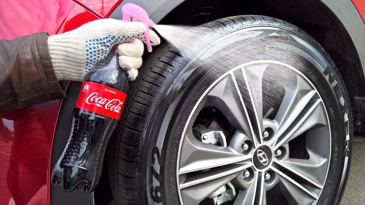 Кока-кола – это напиток, который продается в любом магазине. Многие водители активно его используют не по прямому назначению. В интернете очень много способов использования колы для машины. Газировка имеет в своем составе ортофосфорную кислоту, которая отлично борется с грязью и отложениями. С помощью данного напитка можно отлично почистить колеса ТС. Первым делом нужно помыть машину. Колеса также должны быть чистыми. В процессе эксплуатации ТС на колесах скапливается большое количество отложений и грязи, от которых тяжело избавиться. Заливаем колу в любой распылитель и начинаем чистить шины. Из-за своего особого состава напиток отлично справляется с загрязнениями и придает колесам их первозданный цвет. Цвет будет сохраняться на протяжении пары недель. Процедуру можно повторять после следующей мойки. Кока-кола может быть использована и при чистке самих колесных дисков. Она превосходно борется с грязью и отложениями. Удачи вам на дорогах! Понравилось — ставим палец ВВЕРХ и подписываемс