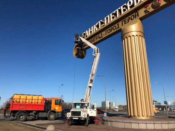 С шампунем. Садово-парковое предприятие «Южное» вымыло въездной знак «Санкт-Петербург» на Пулковском шоссе. Об этом «Карповке» рассказали в комитете по благоустройству. Чтобы помыть знак, рабочие задействовали автовышку и подающее воду под напором оборудование. Зимнюю грязь смывали специальным шампунем. В прошлом году «Санкт-Петербург» помыли в конце мая, так как потепление в город позже. 1 апреля в Петербурге стартовал весенний месячник по благоустройству. Город пообещали очистить от пыли и зимней грязи до конца апреля. За три дня, по данным комитета, помыли 200 магистралей. пока работы идут только днем. Когда прекратятся ночные заморозки,улицы обещают мыть. К майским праздникам обещают убрать 2,5 тысячи магистралей. Фото: комитет по благоустройству Петербурга