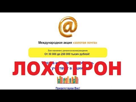 Всем привет дорогие друзья. В этом видео мы с вами пробежимся по сайту лохотрону , где нам международная акция золотая почта предлагает заработать от 30 000 до 250 000 тысяч рублей! Развод, Лохотрон и Обман. Честный отзыв.