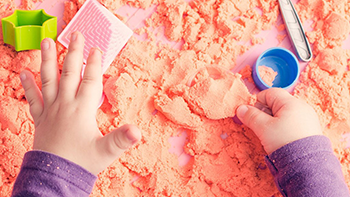 Смешайте 1 стакан коричневого сахара с 1 стаканом кукурузной муки и 5 столовыми ложками растительного масла. То, что вы получаете, - это прохладный, мягкий песок, который можно формовать, прессовать в формы, сжимать, раздавливать и поиграть. Грузовики могут проезжать через него и оставлять следы шин, или вы можете строить здания и создавать маленький город. От маленьких детей до взрослых, каждый найдет игру с лунным песком расслабляющим. Когда вы не используете его, храните лунный песок в герметичном контейнере.