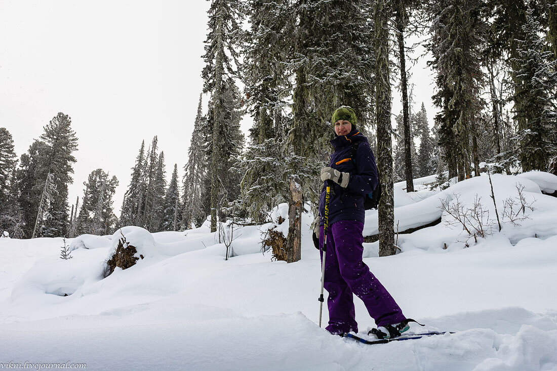 И когда в Шерегеше, мы перешли на внетрассовое катание тоже устраивали снегоступные прогулки наверх.