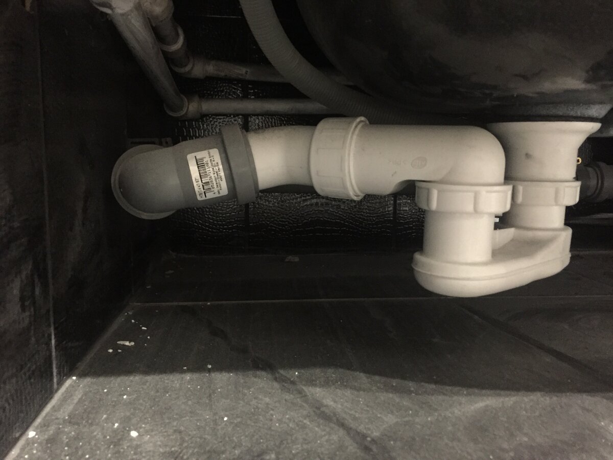 Подключение труб напрямую в канализацию это не новость, но если бы я не писал о том, что уже было, можно было бы вообще ничего не писать. Сама конструкция гофры, подразумевает застревание в ней частиц, которые утекают в трубу вместе с водой, чаще всего это жир и волосы. Так что стабильно, примерно раз в год, гофра забивается до отказа, вода начинает плохо сливаться и приходится разбирать всю эту конструкцию, мыть и прочищать, это все ужасно пахнет и приятного мало в таком занятии. Если подключать сифон напрямую, то в такой конструкции меньше углов и поворотов, совсем идеально, если сифон имеет форму трубы крюком. Там вообще нечему застрять, подобные сифоны можно не трогать очень долгое время. Мой друг вообще не любит убираться в квартире, чего уж говорить про чистку сифонов, так что он был рад, когда я предложил ему убрать гофры вообще везде и заменить их прямым подключением. А это вот фотка с другой квартиры, там надо было еще и красиво соединить. Сантехнику не я разводил если что.