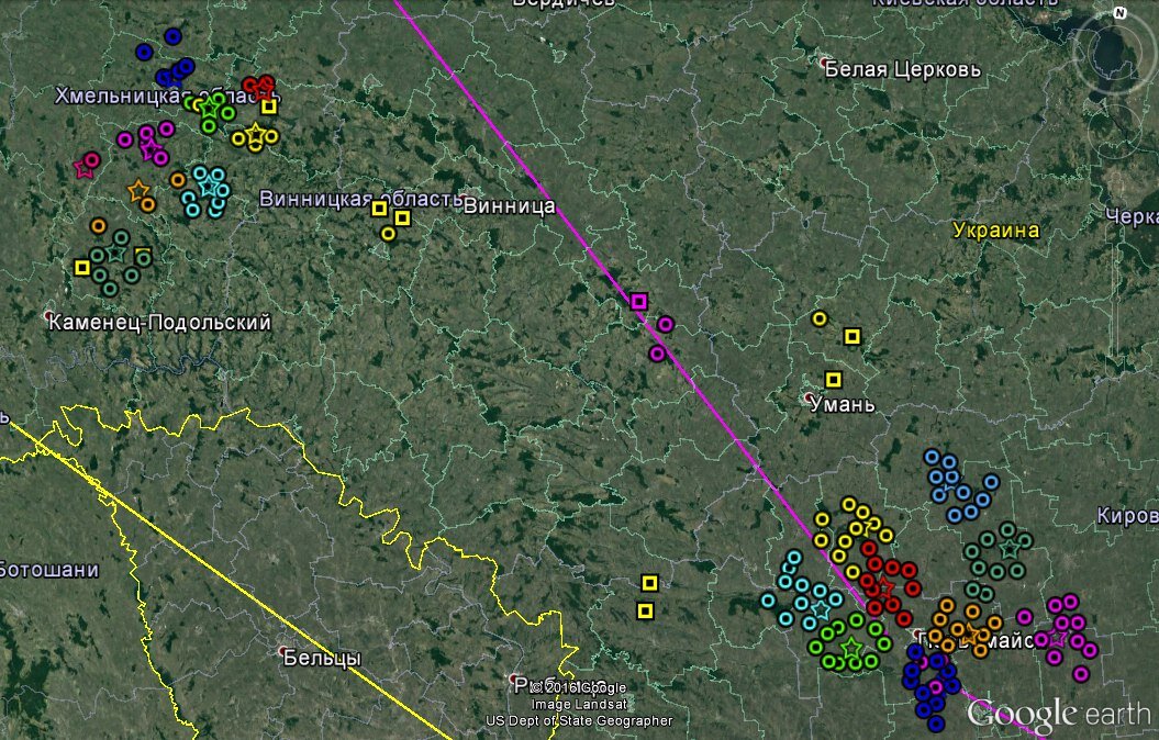 Украине досталось советское наследие - две дивизии РВСН. Вот они, большое число кружков слева вверху - это дивизия в Хмельницком и справа внизу, это 46-я дивизия возле Первомайска, еще с изначальными ШПУ времен СССР. На 1992 год в двух дивизиях - 200 ракет, более 1000 боеголовок, нацеленных на США из Украины. Уже смешно, правда?