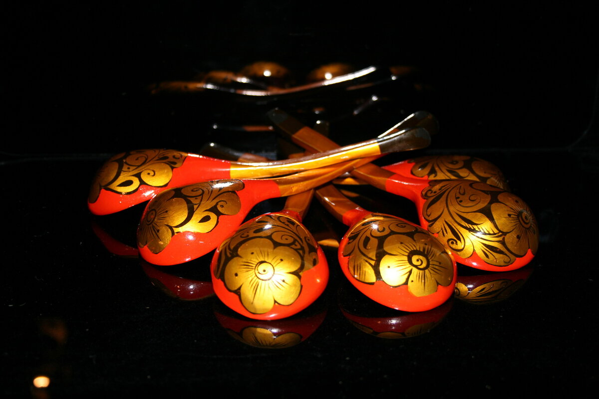 Еще одним узнаваемым во всем мире русским народным промыслом является хохлома. Хохлома в широком смысле это особый вид росписи, обработанная специальным образом со своей цветовой гаммой и стилистическими особенностями. Однако если гжель это изделия керамические расписанная в своем стиле, то хохлома это в основном деревянная бытовая утварь со своим орнаментом. И не удивительно, ведь как художественный промысел хохлома зародилась в густых лесах Заволжья в 17 веке, где не было пригодной для производства хорошей керамики глины, но в изобилии имелась качественная древесина, из которой испокон веков русские люди делали себе дома и бытовую утварь.