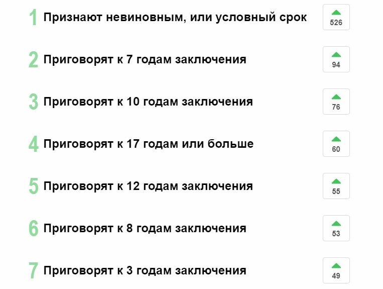 Бывшего мэра Владивостока Игоря Пушкарева должны признать невиновным или приговорить к условному сроку заключения. Именно такой вариант ответа на опрос известного информационного агентства Приморья получил наибольшую поддержку среди жителей Владивостока и Приморского края. «Народное освобождение» бывшего градоначальника столицы Приморского края многократно опередило все другие варианты ответа на опрос, которые содержали хоть какой-то срок заключения в колонию, сообщает РИА VladNews со ссылкой на ИА PrimaMedia. Так, по состоянию на 13:13 за вариант «Признают невиновным, или условный срок» проголосовало 526 участника опроса. После него ближайший по популярности ответ был более прагматичный вариант «Приговорят к 7 годам заключения», собравший пока всего 94 голосов опрошенных. Остальные варианты опроса пока менее показательны, однако голосование еще не закончено. Высказать свою точку зрения относительно содержания судебного приговора может любой читатель до 9 апреля. Напомним, приговор б