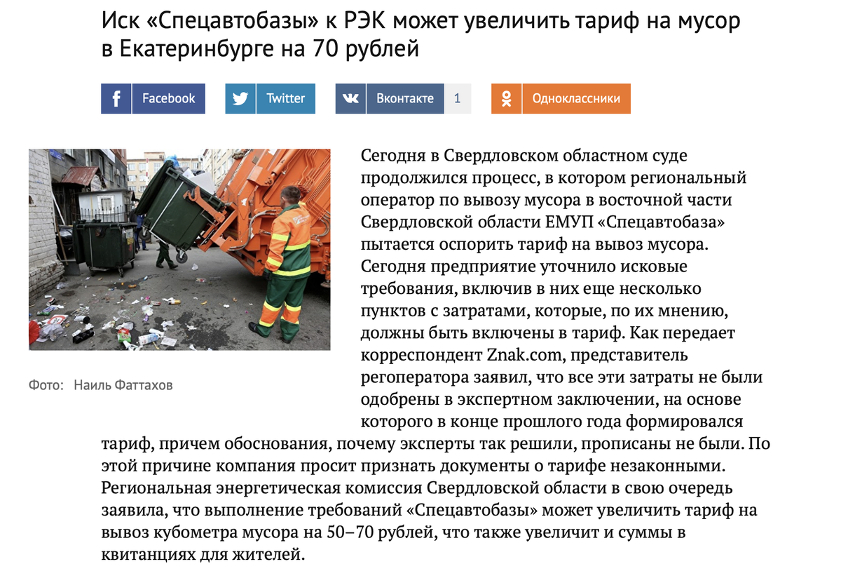И вот Свердловская область, как лидер "второй" мусорной реформы с одним из самых высоких тарифов в стране (148 рублей с человека) делает ход конем. Руководство Спецавтобазы, аккуратно и заблаговременно смененное как раз перед поступлением первых миллиардов, писал об этом: https://zergulio.livejournal.com/6222192.html, решило поднять тариф еще на 50-70 рублей: