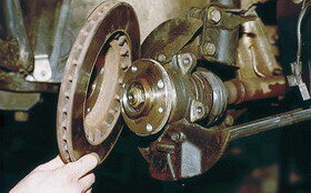 Сами тормоза с годами претерпели также существенные улучшения. Несколько десятилетий тому назад широко использовались тормоза барабанного типа, и они до сих пор используются на задних колесах у многих автомобилей. Данные тормоза используют в работе узел в виде барабана, который вращается вместе с колесом. Внутри барабана <башмаки> вместе с заменяемым фрикционным материалом прижимаются с силой к барабану, когда Вы нажимаете на педаль тормоза. Тормоза барабанного типа работают неплохо. Однако при этом образуется сильное тепло, которого достаточно, чтобы снизить эффективность торможения, если Вы делаете это слишком резко. Снижение эффективности тормозов происходит тогда, когда имеется резкое перегревание тормозов. Мощность торможения сильно падает, и тормозные детали и колодки могут выйти из строя.
