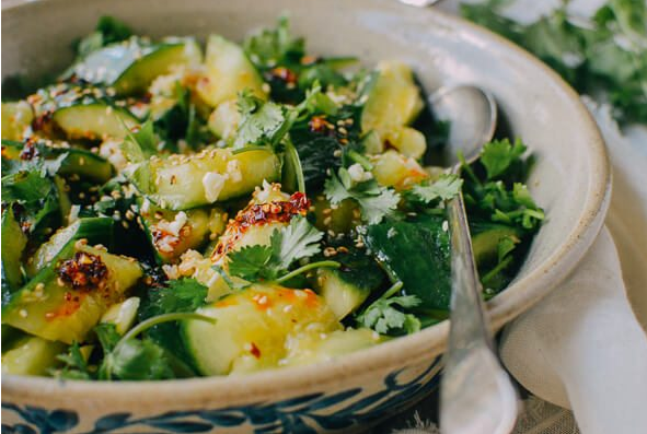 Надоели обычные салаты из огурца? Тогда быстрее попробуйте приготовить эти великолепные огурчики, так как они не оставят вас равнодушными. 😊 Нам потребуется: 2 длинных, предпочтительно без косточек огурца 1 чайная ложка соли 2½ чайных ложки сахара 2 чайные ложки кунжутного масла 3 чайных ложки легкого соевого соуса 1½ столовых ложки рисового уксуса 2-4 зубчика чеснока, мелко нарезать 1-2 чайных ложки масла чили (по желанию, можете заменить парочкой слайсов свежего чили) 2 чайных ложки жареных кунжутных семян маленькая горстка нарезанной кинзы Способ приготовления: Вымойте огурцы и высушите их чистым полотенцем. Приготовьте заправку для салата, смешав соль, сахар, кунжутное масло, легкий соевый соус и рисовый уксус. Перемешайте, пока сахар и соль полностью не растворится. Отложите в сторону. На разделочную доску положите огурец, сверху него большой нож и слегка придавите его рукой. Огурец должен расколоться и разбиться на четыре части. Повторите по всей его длине. Как только весь ог