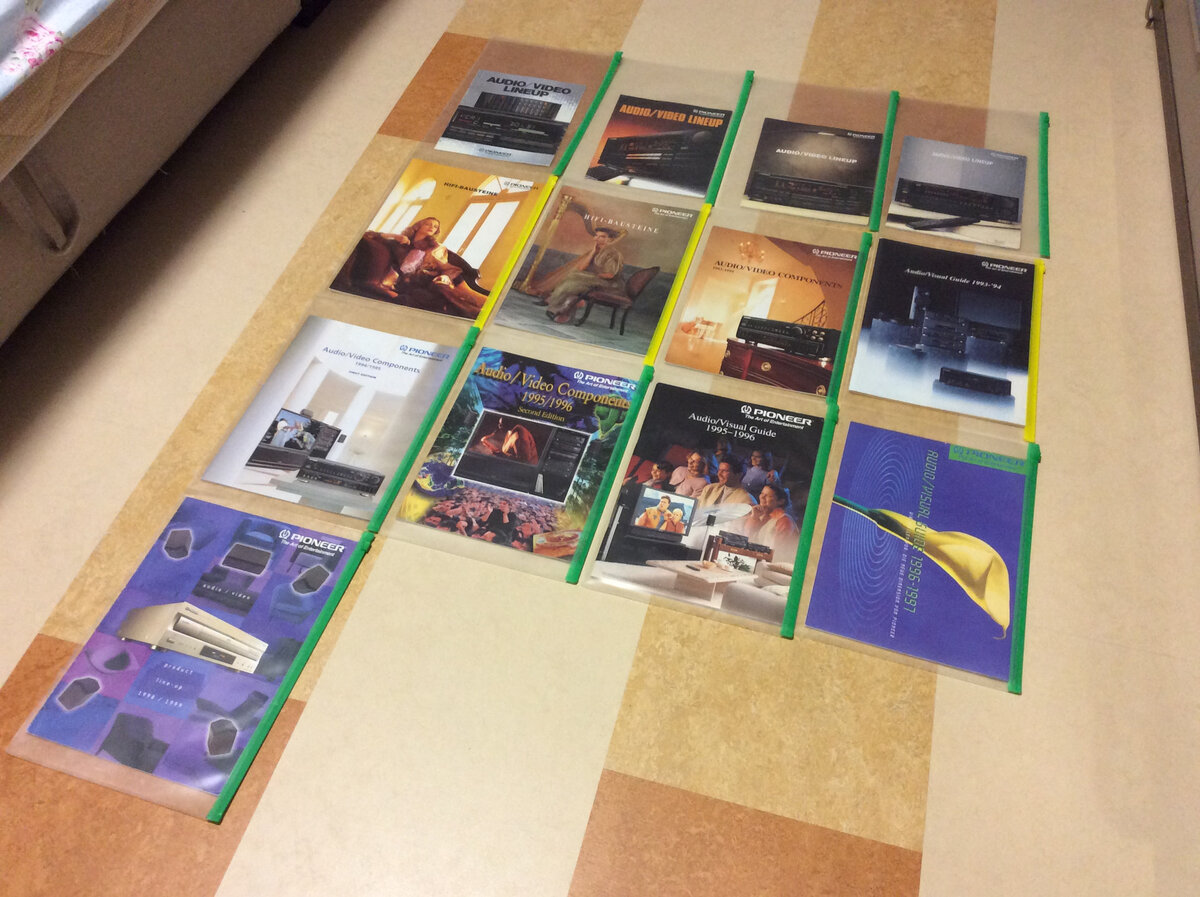Друзья! Есть у меня одно странное хобби — собирать каталоги. Раз уж "подсел" на технику этой марки, значит, при случае, и каталоги соберем. Примерно с 1987 по 1998 года. Не винтаж, не глубокое ретро, как раз для техники, которую собираю. Лишь бы цена была разумная. ) Так и приобретал по одному, где находил. В разное время, у разных продавцов, в разных странах. С одной стороны вроде бы никчёмная макулатура 80-х и 90-х годов, которую ёще кто-то продает. С другой — довольно редкие оригинальные каталоги фирмы Pioneer. Уже собрал: 1987 AUDIO/VIDEO LINEUP