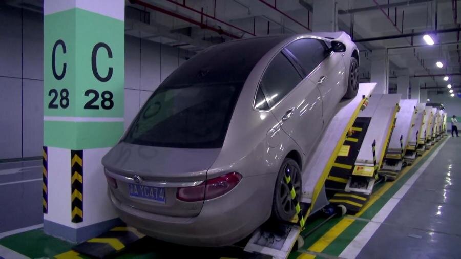 Инженеры из Поднебесной сотворили очередное чудо. При въезде на футуристическую парковку водители припарковывают свой автомобиль на стойке, которая скользит вместе с их транспортным средством, а затем наклоняет его назад примерно на 30 градусов, сохраняя его между другими автомобилями. Благодаря такой инновационной методике автопарк сумел увеличить вместимость с 24 до 40 парковочных мест. Как тебе такое, Илон Маск?