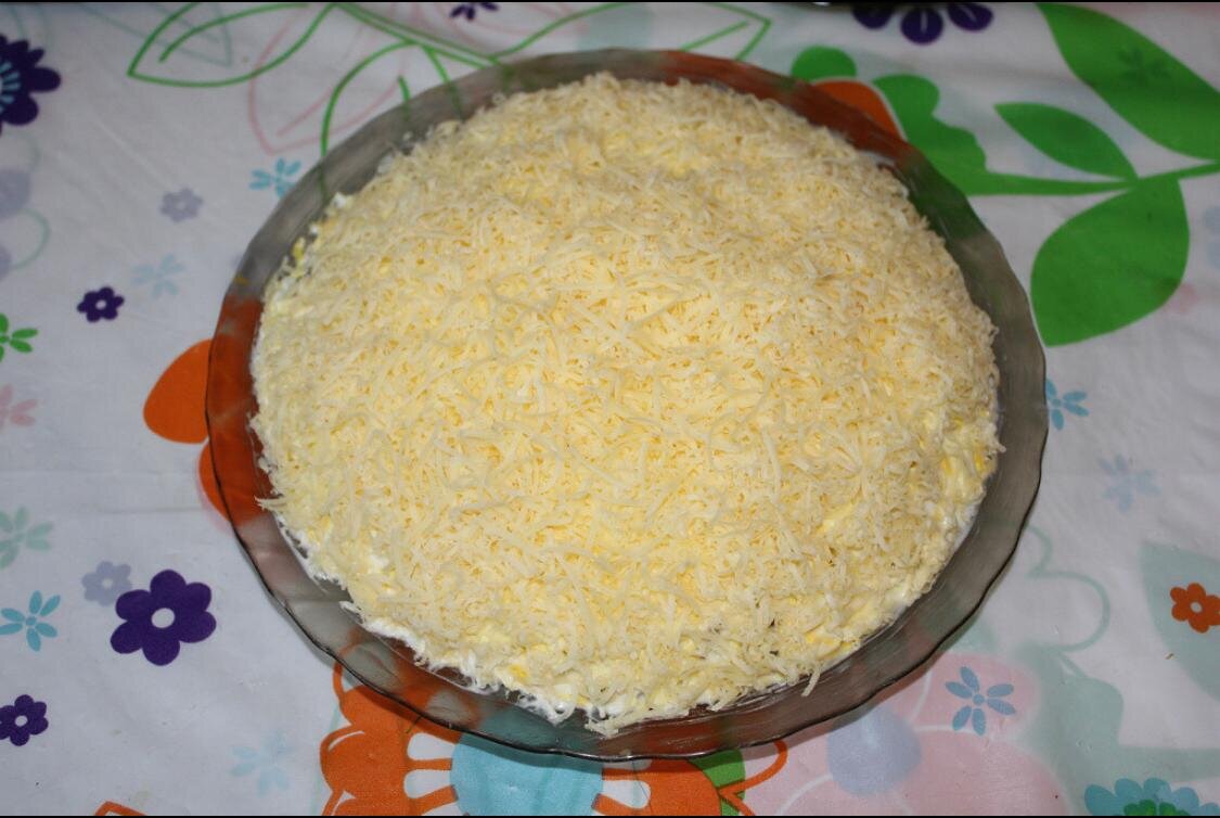 Доброго субботнего дня всем! Хочу предложить еще один вариант салата с языком, но уже слоенный. На мой вкус - маринованный лук с сочетании с языком- это бомба. Ингредиенты: 1. Язык говяжий - 500 грамм 2. Лук репчатый - 1 крупная 3. Грибы маринованные - 400 грамм 4. Яйца - 4 штуки 5. Сыр (ваш любимый) - 180-200 грамм 6. Майонез - промазывать слои 7. Зелень по желанию - для украшения 8. Уксус 9% для маринования лука Готовим наш салатик. Я готовила на большом блюде. 1. Варим язык, и остужаем. Варим яйца. Лук чистим, режем тонкими полукольцами и маринуем в уксусе, минут 10-15. В моем семействе очень любят маринованный лук, я мариную подольше. 2. Язык режем соломкой, грибы тоже режем соломкой. 3. Яйца и сыр трем на терке. 4.Собираем салат: -отжимаем лук, и выкладываем на блюдо, -далее выкладываем язык, промазываем майонезом, -выкладываем грибы, промазываем майонезом, -выкладываем натертые яйца, по желанию можно немного присолить, промазываем майонезом, -сверху укладываем натертый сыр,