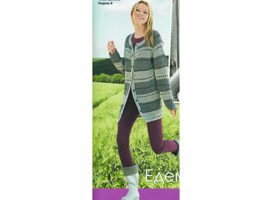 Серый кардиган крючком - красивая модель на весну