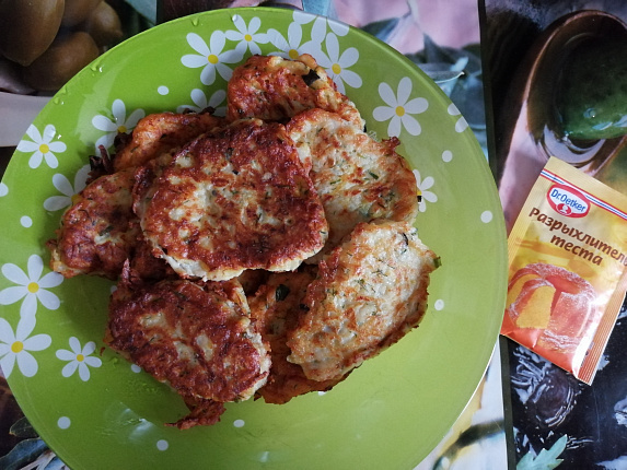 Зимой, когда хочется летнего солнца и тепла, можно приготовить замечательны оладушки из кабачков и зелени. Это блюдо легко готовится и очень быстро съедается. Кабачки я храню дома в темной кладовой. Собранные в конце лета кабачки с толстой шкуркой и без повреждений спокойно хранятся в домашних условиях. Эти оладушки я делала в апреле, а кабачок все еще вкусный! О рецепте Сложность: Легко Количество порций: 3 Время приготовления: 45 мин Ингредиенты Разрыхлитель теста Dr.Oetker - 1 ч. л. Кабачок - 1 шт. Яйцо - 1 шт. Мука - 3 ст. л. Соль - 1 ст. л. Базилик - 1 ст. л. Укроп - 2 ст. л. Для жарки - подсолнечное рафинированное масло Способ приготовления 1. Берем продукты по списку. На фото нет зелени, т.к. я использую мороженную, и ее лучше сразу добавлять перед жаркой оладушек. 2. Чистим кабачок, убираем сердцевину 3. Кабачок трем на крупной терке, добавляем соль и оставляем на 15 минут. На этом этапе из кабачков удаляется лишняя жидкость, т.к. кабачки очень водянистые даже при длительном х