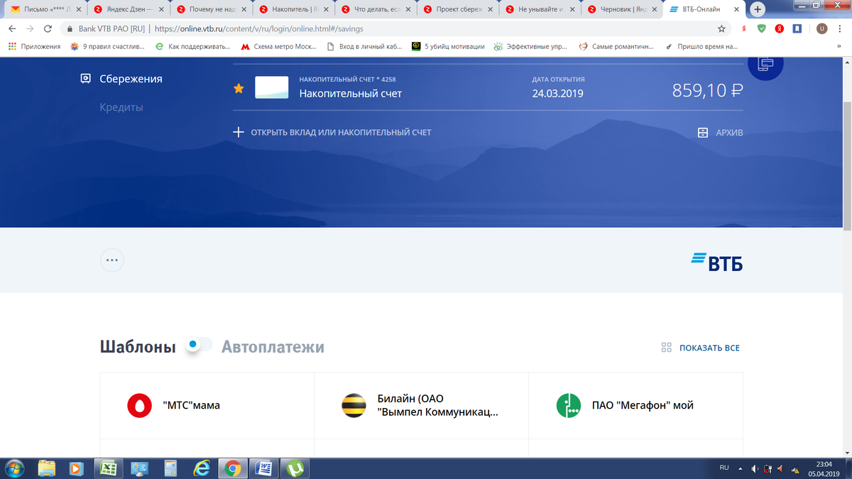 Добрый вечер! Пока не удается выходить в эфир каждый день. Но я буду стараться и скоро начну серьезнее относиться к этому своему новому виду деятельности..) Сегодня 13-й день как я коплю деньги по схеме накопления 1,3,5,7....27,29,31....719,721,723... 1459 рублей. Каждый день откладывается сумма денег и значения не повторяются.. И так 2 года. Сумма может быть любая. Главная она не повторяется изо дня в день... Отложенную сумму вычеркиваю из списка... Вчера я отложила в свою копилку 97 рублей, а сегодня всего 29 рублей. Ничего это уже хоть и невеликие, но всё таки шаги... И в копилке мало помалу деньги прибавляются.. ) Итак, за 13 дней я накопила 859 рублей и 10 копеек процентов за пошлый месяц март..) Это всего лишь эксперимент.. Добрый вечер, друзья! Этот пост начала писать вечером два дня назад и так и не закончила( Это потому что приезжаю домой, ужин, душ и спать.. Уставала и не высыпалась последние дни.. А всё потому что смотрю фильмы или читаю какую то интересную инфу до позд