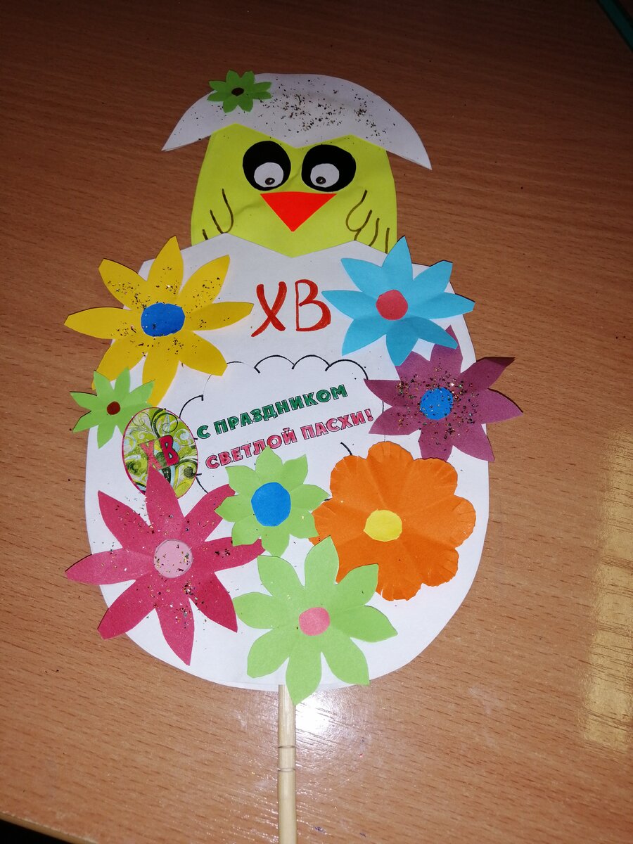 Проведите время вместе с ребенком, делая замечательную игрушку-сувенир на светлую Пасху своими руками. Символом Пасхи является куриные яйца, которые красят и украшают. Мы же сделаем яичко из простой бумаги. Из картона нужно вырезать шаблоны яйца, цыпленка и скорлупки. Цыпленка вырезаем из желтой двухсторонней бумаги. Нужно вырезать два овала. Одну половинку цыпленка нужно оформить вот так! К другой половинке цыпленка приклеить скотчем палочку от ролл. Затем склеить половинки вместе, приклеив позади вторую часть скорлупки. Получился цыпленок на палочке) Теперь его кладем на яйцо, вырезанное из белой бумаги и проклеиваем яйцо клеем по контуру. Сверху прикладываем вторую часть яйца. Игрушка готова! Осталось лишь украсить. Здесь уже зависит от вашей фантазии! Наклейки, цветы, блестки, украшения, ленточки, сделать само яйцо из цветной бумаги - дело вкуса! С наступающим вас праздником!