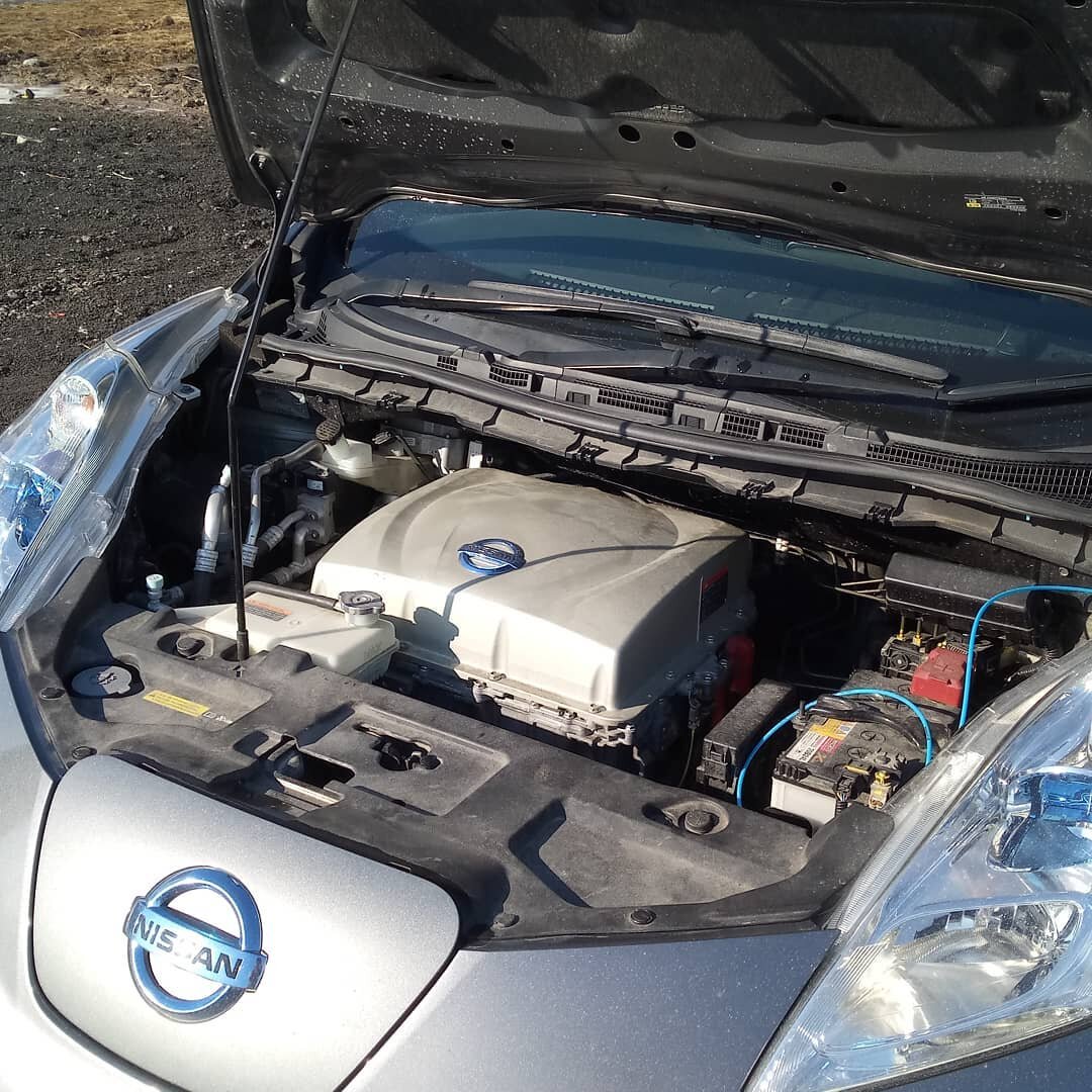 Сгоняли поменяли масло в редукторе и продиагностировали подвеску. Что интересно, масло теперь как молоко, не по литру ровно выпускается, а по 946 миллилитров. Заявлено, что в редуктор входит 1,1 литра, а вошло 1,5. Ребята говорят, это потому что AZE0. В ZE0 входит 1,1. Цена вопроса (замена + осмотр + диагностика) 500 рублей. Ну и 1200 за масло. Знакомый делает на Авторемонтной, 8, строение 15, может кому из тюменцев пригодится. Вот так, кстати, выглядит Leaf под капотом. Для тех, кто не видел, и тех, кто просил. 😊