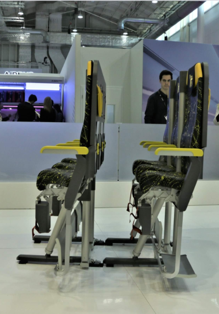 Уже давно в авиационном бизнес-сообществе ходили слухи, что появилась идея перевозить пассажиров экономического класса стоя. Нормальному человеку это казалось чей-то злой шуткой. И вот оно свершилось. На выставке Aircraft Interiors в Гамбурге, была представлена уже рабочая новая версия «полустоячих кресел» для эконом класса, разработанной итальянской компанией SkyRider. Данная версия рассчитана на шаг кресел в 23 дюйма (58,4см). Предполагается, что данная компоновка сможет принести авиакомпании экономию до 40%. Но уж если так пошло, и сиденья стоячие, то не мешало бы им и педали приделать, пусть пассажиры в полёте динамо-машину крутят. А в конце полёта, пассажиры смогли бы получать «cash-back», по заработанным киловаттам. Ну кому больше, а кто филонил весь полёт, меньше. Ну что сказать-то? Следующим инновационным шагом следует ожидать, что бы пассажиры эконом класса проходили в салон со своими табуретками. Или поручни как в метро сделать, и не позориться с такими креслами, будет