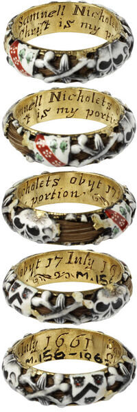В XIX веке одним из оригинальных материалов, известных в ювелирном искусстве, были волосы. Традиция их использования восходит к неоклассическому стилю, такая практика была известна и в эпоху ампира. Среди украшений преобладали медальоны, а вот кольца встречаются сравнительно редко. Разумеется, эти ювелирные украшения было принято носить как мемориальные — в память о значимых событиях, о родных и близких, а поэтому их снабжали надписями, содержавшими имена, даты, слова молитвы. Любопытно, что наиболее типичным для таких надписей был готический стиль письма.