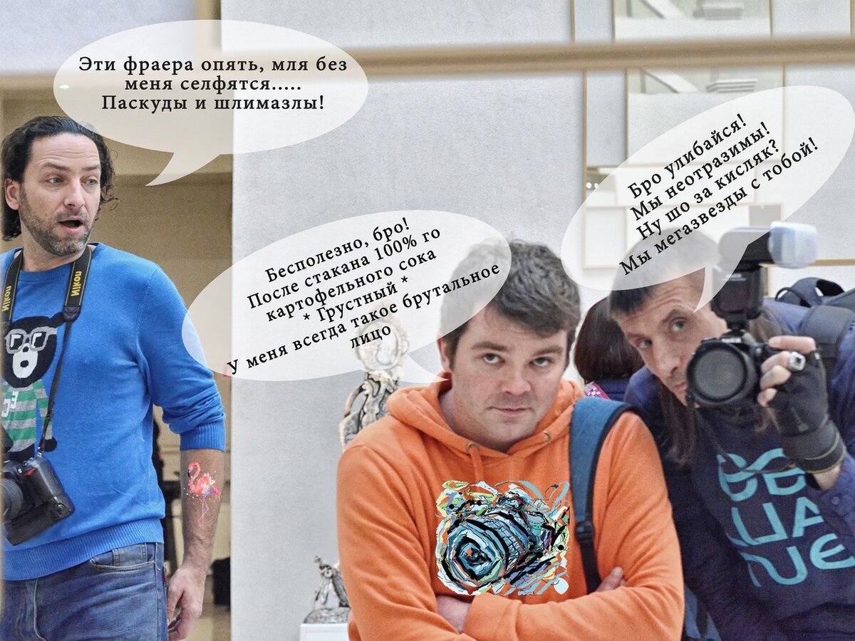 На фото мой друг Евгений Манакин, его друг Константин Небесных, а все вместе мы - фотографы. Кадр вышел случайно, я решил придумать подписи. Подписывайтесь на мой канал!