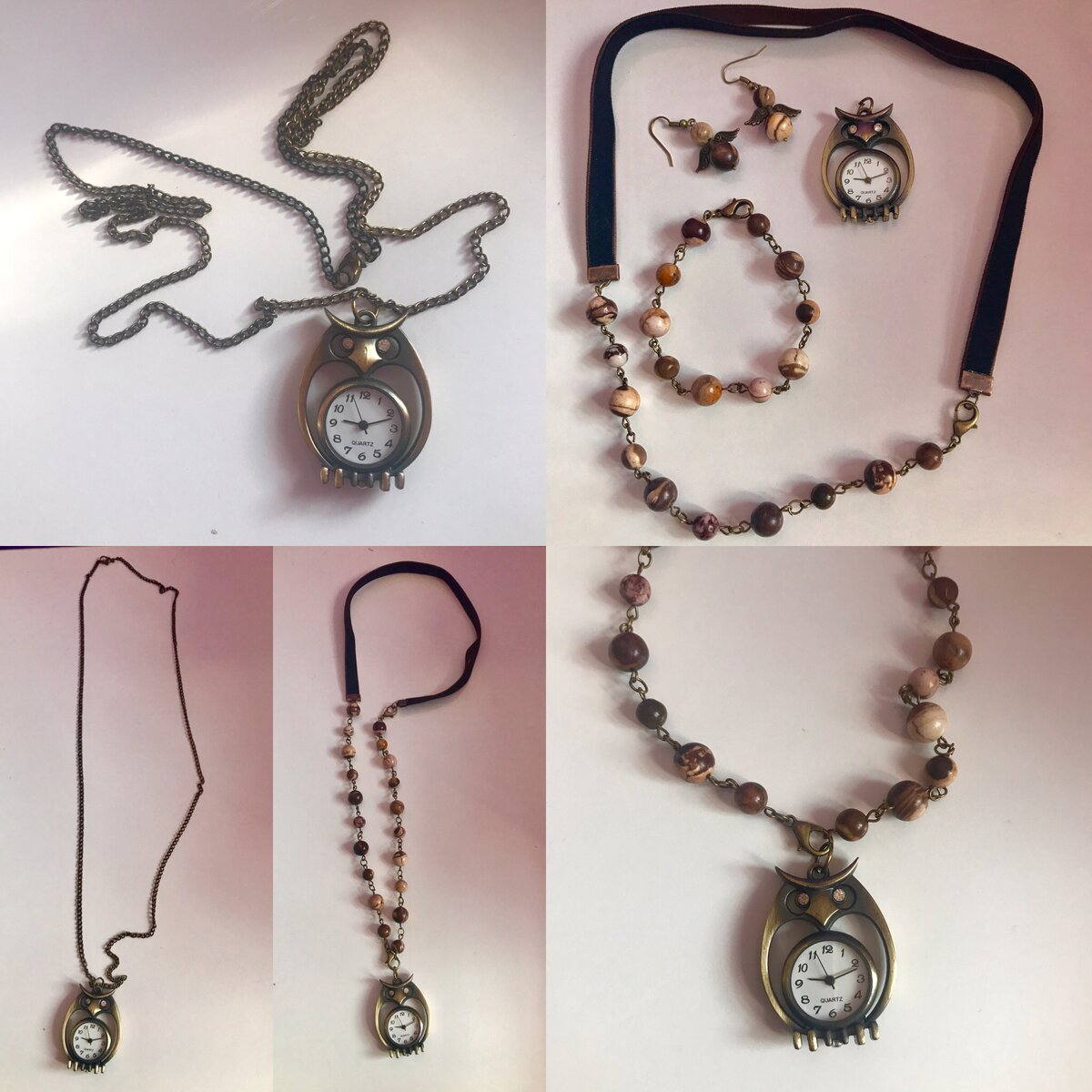 Переделывать старые украшения оказалось интересней, чем делать новые. Они – вдохновение сами по себе, в который раз убеждаюсь в этом. Изначально из доверенного мне, годами проверенного кулона-часов я хотела сделать тоже кулон, просто новый. Но в процессе работы как-то сами собой родились новые идеи. Так что сегодня будем беседовать не о камнях, а о том, что можно с ними сделать. Кулон не мой, но мне хорошо знаком – я знаю, что часам уже много лет, однако отважный корейский механизм работает с доблестью швейцарского :) К тому же, сама сова сделана из хорошего металла, по ней вопросов вообще не было. Претензии были к цепочке. Металл этого цвета темнеет всегда, это просто вопрос времени и частоты использования. Я сама через это сто раз проходила: долго такие цепочки не живут, мне еще предстоит искать новое оформление для других кулонов именно по этой причине. Так что сразу после съемки фото цепочка отправилась в мусорку. Менять цепочку на другую цепочку не хотелось: банально и предска