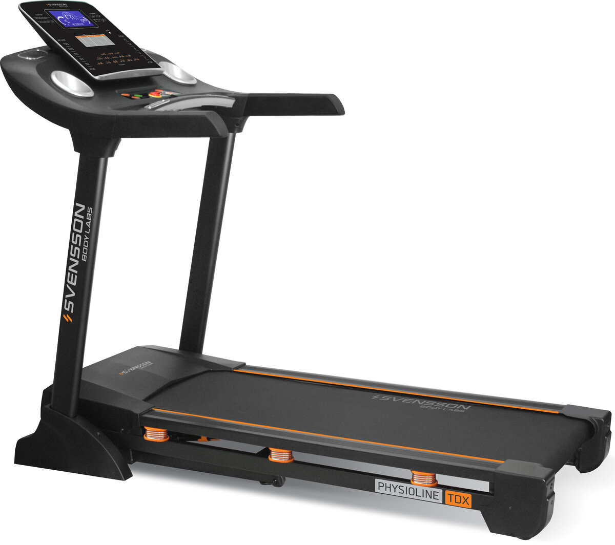По своим динамическим характеристикам SVENSSON BODY LABS PHYSIOLINE TDX подойдет для любых пользователей, включая профессиональных спортсменов. Сердце дорожки - мощный двигатель 3,25 л.с. японской Mitsubishi - разгоняет полотно до внушительных 18 км/ч. Большое беговое полотно с рабочей площадью 138*46 см. обеспечивает полную свободу движений на любых скоростях, включая максимальные. Угол наклона изменяется автоматически в диапазоне от 0 до 15%. За амортизацию отвечает новейшая амортизационная платформа physio-Run™, построенная с использованием двойной деки и 6 силикон-гелиевых подушек с пружинами. Такая технология обладает великолепными демпфирующими свойствами и оказывает минимальную ударную нагрузку на колени, стопы и позвоночник. Максимальный вес пользователя для SVENSSON BODY LABS PHYSIOLINE TDX составляет 150 кг.