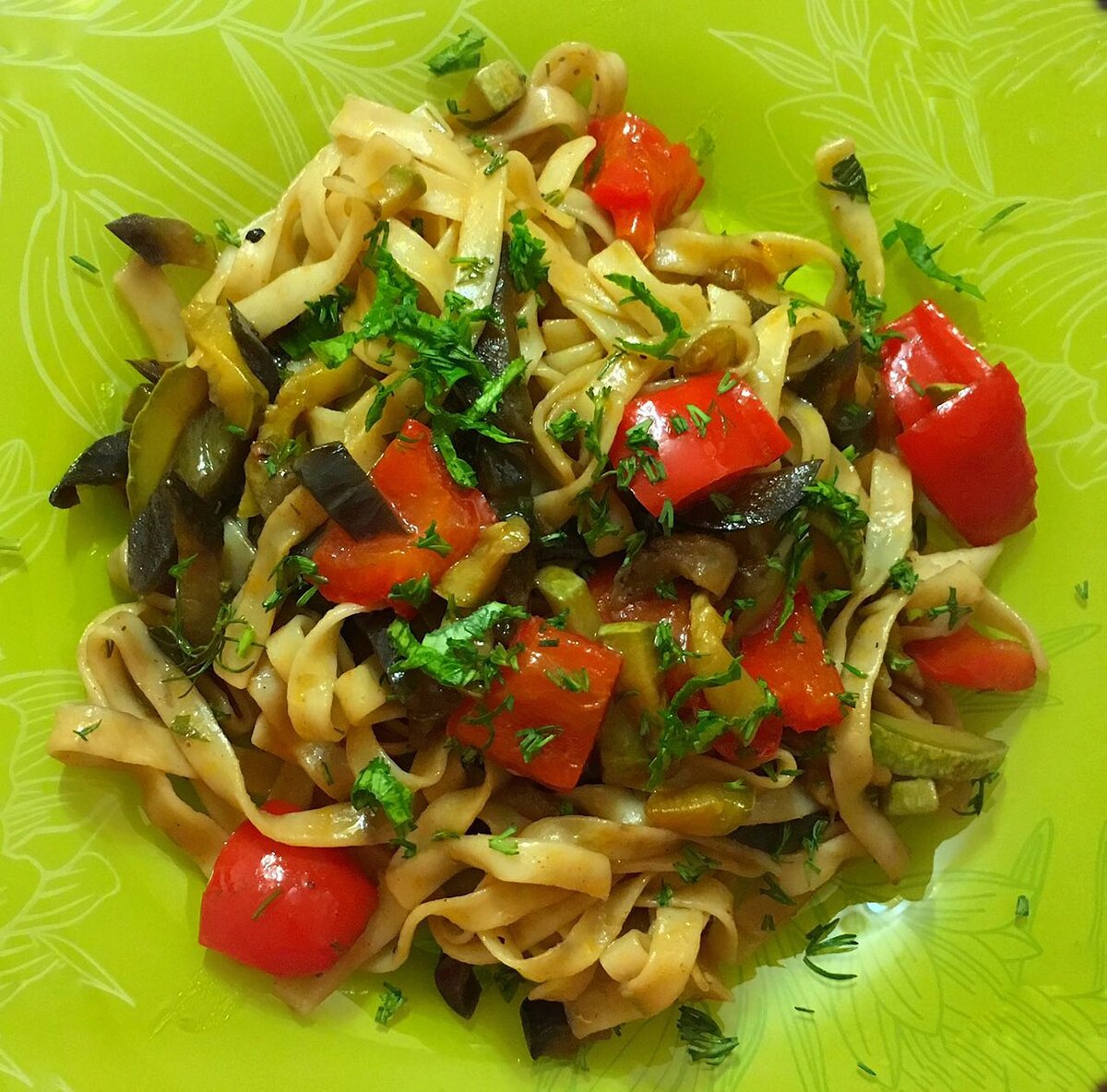 Если вы любите азиатскую кухню, вы обязательно должны приготовить это блюдо. Вся его прелесть в соусе, который придает шикарный аромат и вкус. Нам понадобятся: -лапша Удон; -1 кабачок; -1 баклажан; - 1 перец; -зелень. Для маринада смешиваем: - 5 ст. л. соевого соуса; - 5 ст. л. подсолнечного масла; -паприка молотая; -перец черный горошком (перемолоть); -чеснок. 1. Кабачок и баклажан режем соломкой, заливаем водой и даем постоять 10 минут. 2. Пока овощи стоят в воде, отвариваем лапшу до готовности. 3. Сливаем воду с овощей. Режем перец кубиками и заправляем маринадом. Оставляем мариноваться на 10 минут. 4. Через 10 минут выкладываем на сковороду, тушим 7 минут, добавляем лапшу, хорошо перемешиваем. И наше блюдо готово. Обязательно сохраняйте этот рецепт себе в закладки, ставьте лайк и делитесь с друзьями. Это безумно вкусно, ароматно и красиво. Приятного вам аппетита!