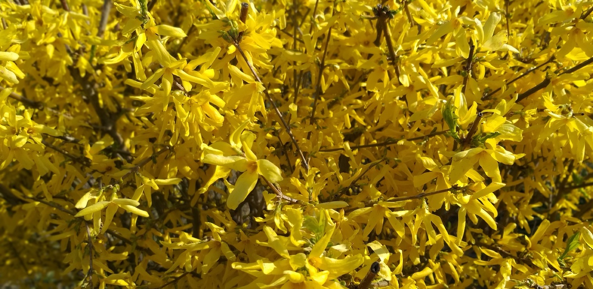 Форзиция - это декоративный кустарник, который вырастает до 2 - 3 метров в высоту и достигает примерно двухметрового диаметра в ширину. Она зацветает весной очень рано, прежде, чем распустятся ее листья. В теплых регионах форзиция может зацвести уже в марте. Интересно, что даже ветки форзиции имеют желтый оттенок, по которому ее легко можно узнать даже зимой. Листва кустарника тоже имеет желтоватый оттенок, и эту особенность можно учитывать в ландшафтном дизайне. Существует форзиция, которая цветет белыми цветами, но встретить ее можно гораздо реже. Посадка и уход Форзиция крайне неприхотлива в уходе и не требовательна к почвам. Очень хорошо переносит жару и скудный полив, поэтому ее частенько используют в городском озеленении. А вот застоя воды она не любит и это нужно учитывать при посадке. Форзиция прекрасно чувствует себя на солнце, хорошо переносит и полутень. Оптимальное время посадки форзиции - это весна или осень. Для посадки нужно сделать яму 60-70 см. в глубину и 40-50