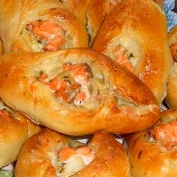 Добрый день, дорогие друзья! Сегодня я поделюсь с вами рецептом воздушных и румяных пирогов с невероятно вкусной и сочной начинкой из красной рыбы. Попробуйте приготовить, уверена, что вам понравится! Читайте так же рецепт приготовления рыбного паштета. Для приготовления нам потребуется: для теста: для начинки: для смазки изделий: Сначала готовим сдобное дрожжевое тесто. На канале уже есть рецепт приготовления теста, описывать его повторно не буду, потому что с ним можно ознакомится здесь. После готовим начинку. Филе рыбы отделяем от кожи и костей, промываем и мелко нарезаем. Лук чистим и мелко режим. К рыбе добавляем лук, яйцо, соль и перец, все хорошо перемешиваем. Начинка готова! Шарики немного раскатываем в лепешки и выкладываем начинку в середину каждой лепешки. Формируем пирожки, защипнув тесто с двух сторон, оставляя открытой серединку.Ставим пирожки в теплое место для расстойки на 20 — 30 минут, тесто насытится кислородом и в таком виде запечется, что придаст изделию дополните