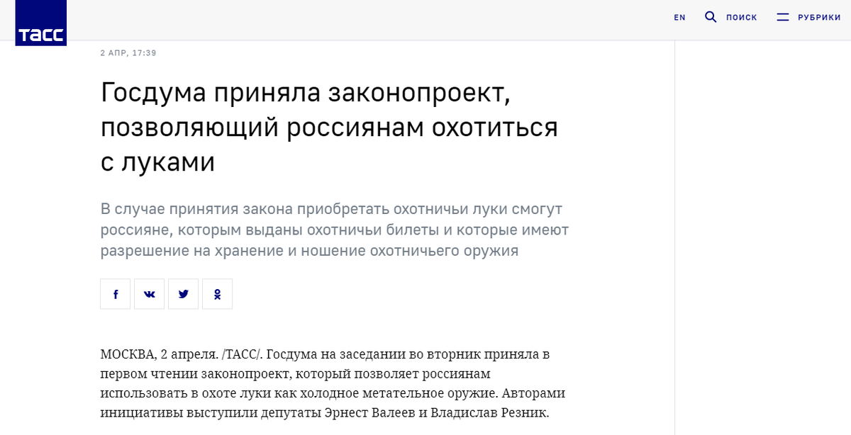 Несмотря на всё обилие законов, которые печатает «Бешенный принтер», дабы имитировать свою деятельность, назвать реальные законы, которые упростили бы жизнь простым гражданам, очень сложно. Ведь в основном, Государственная дума специализируется на повышении налогов и разного рода запретах. Они ведь даже запретили себя любимых критиковать. Лучше бы себя вообще запретили – проблем бы стало меньше. Но, нет. Единственный закон, который должен был облегчить жизнь простому гражданину, это сбор валежника. Ну, где, как не в нашей богатой стране разрешить его собирать? Лес то идет китайцам, а нам так, что останется…. И вот, наконец, этот день настал. У нас появился серьезный конкурент для валежника. Госдума разрешила россиянам охотиться с луками. Вот он, обещанный рывок! Давайте в комментариях подумаем, какой закон будет следующим? Ведь вектор уже четко определен. Сначала, разрешили собирать валежник, теперь охотиться с луком, дальше будет факел вместо света. Ждем разрешения на каменный топо
