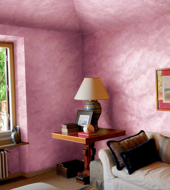 Чтобы отобразить на стене поверхность, покрашенную небрежно, нужно по еще влажной краске сделать мягким валиком смазывающие движения. Для создания крапчатого эффекта необходимо напылить на стену флоковые материалы, которые создадут на стене радужные металлизированные переливы. При большой плотности флокового напыления можно создать иллюзию медной или даже золотой стены. Это дорогой метод отделки стен, но результат превосходит самые смелые ожидания. Применяя метод распыления акриловых красок с помощью специального пистолета можно получить на стене фактуру гранита без использования гранитной пасты или пыли.