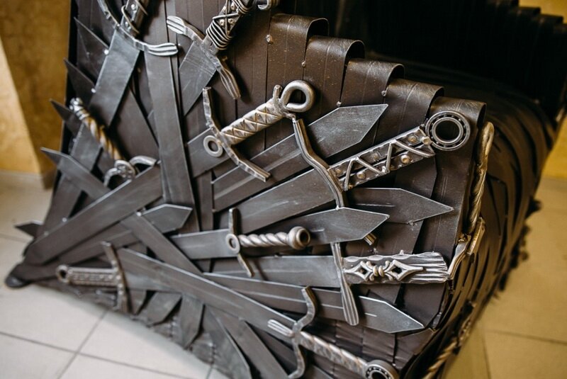 - Железный трон выковали мастера Александр Разбегаев и Юрий Кириченко. На его создание ушло три месяца и более 50 мечей, - рассказывает Роман Лукашевич, заместитель главного инженера фабрики. - В нашем коллективе немало поклонников сериала "Игра престолов", а воссоздать трон придумал директор, Андрей Дубинчик.