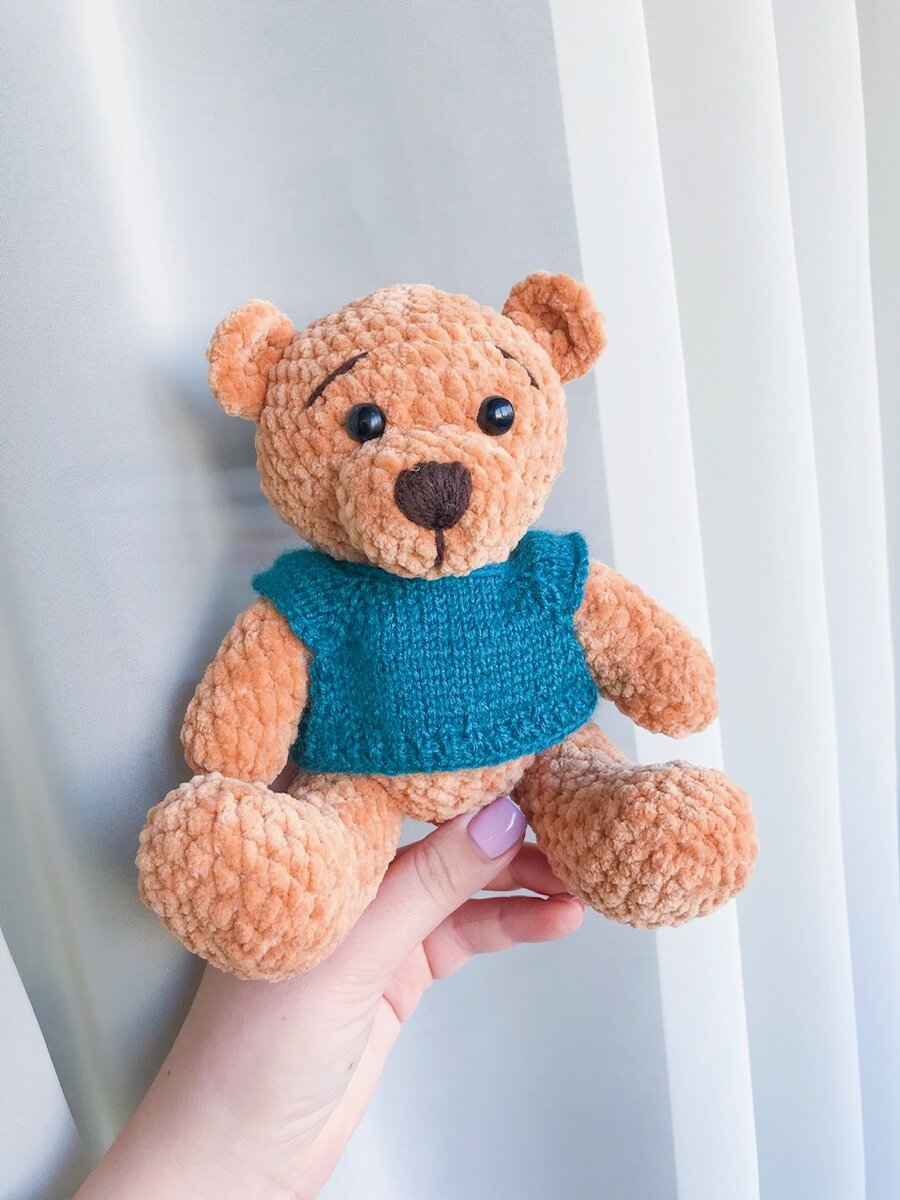 Здравствуйте, дорогие рукодельницы! Поднакопилось у меня готовых работ и решила с вами поделиться. Как обычно укажу авторов МК и материалы, которые использовала. Ну что ж, поехали! После плюшевого лисенка из последнего отчета о готовых работах, мне захотелось продолжить вязать из плюшевой пряжи. Не скажу, что я ее большой фанат, но иногда для разнообразия могу из нее повязать. По одной и той же схеме связала двух мишек. Схема называется "Зефирный мишка", автор Екатерина Арефьева (в бесплатном доступе). Ростом мишки получаются около 20 см. Вязала крючком 3,5 из пряжи "Плюша" , в 100 гр - 120 метров. Одного мотка хватило на одну игрушку. По желтой могу сказать, что она слишком уж сыпется. Обеими не могла пришивать детали друг к другу, потому использовала обычные нитки в четыре сложения подходящего цвета. Потом была связана погремушка "Котопес", о которой я писала в предыдущей статье. Вязала из пряжи Jiens по своей схеме. Крючок № 2. Потом у меня случилась любовь)))Я увидела каких п