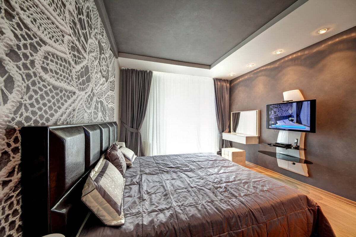 Во время ремонта жилья не всегда владельцы могут позволить себе приобретение дорогостоящих материалов и предметов. Роскошный дизайн квартир легко сделать и без больших затрат. Для этого стоит лишь правильно выбрать оттенки, применять натуральные и недорогие структуры, а также учесть несколько простых правил. Недорогой текстиль Гостиная, столовая или интерьер спальни — те места, в которых ключевую роль играет текстиль. Он может выглядеть дорого, но стоит немного. При этом шторы, скатерти должны обладать следующими чертами, которые не сделают дизайн интерьера безвкусным: · текстиль может быть изготовлен из полиэстера или любых натуральных материалов, но яркий цвет, отсутствие повреждений ткани, равномерная расцветка и аккуратные швы характеризуют качественное изделие. Вещи могут быть однотонными или с невзрачным принтом, но ни в коем случае не пестрыми, украшенными стразами; · обилие блестящей ткани — признак безвкусного интерьера. Можно выбрать однотонные матовые шторы, которые можно д