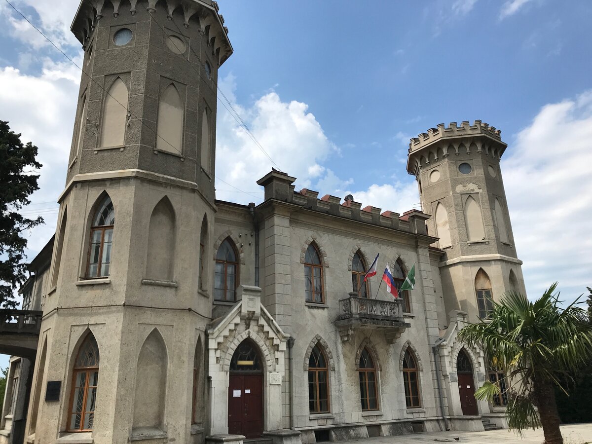 Есть такие места на Крымском полуострове, которые малоизвестны даже самим коренным жителям. Просто некоторые памятники архитектуры заброшены и не посещаются туристами, хотя их история и внешний вид вполне заслуживают внимание. Сегодня расскажу о "Дворце Графини Паниной в Гаспре". Где находится В настоящее время дворец располагается на территории санатория "Ясная поляна". Однако санаторские не облагораживают территорию и парк при дворце, все находится в диком запустении. Лестница к имению разбита, дорога также в плохом состоянии, парк весь заросший. Сам Дворец графини Паниной заколочен и не функционирует. История Софья Владмимровна Панина, которой в конце XIX века имение досталось от родственников, отреставрировала кровлю и фасады и возвела оранжерею и домики для гостей. Обладая предприимчивой жилкой, графиня сдавала дворец как дачу состоятельным гражданам. С сентября 1901 по июль 1902 года в имении проживал Лев Толстой, который работал в Гаспре над повестью «Хаджи-Мурат». Навестить
