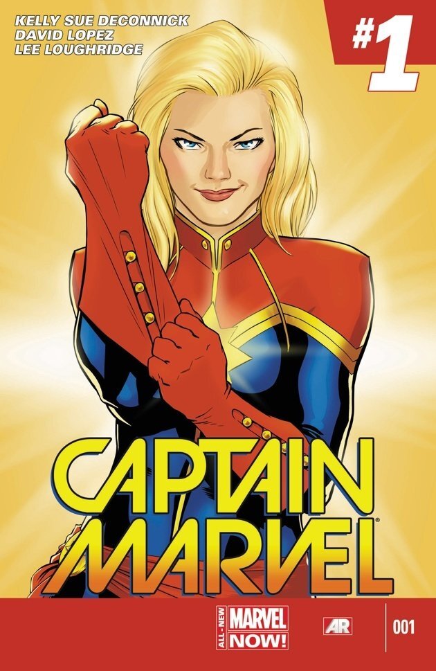 Одна из самых узнаваемых обложек в наше время, и с которой у многих ассоциируется этот персонаж. В принципе, у этого комикса есть общие черты с вышедшим фильмом «Капитан Марвел». За авторство комикса отвечали Келли Сью ДеКонник и Дэвид Лопез. Последний также выступил автором обложки.