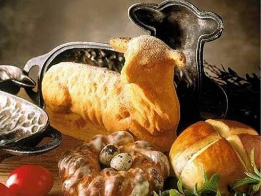 Трудно себе представить Пасху без ягнёнка на столе. Именно он символизирует в еврейской традиции Израиль как стадо Бога, которое ведет сам Господь. В христианстве ягнёнок является символом Иисуса Христа, так как он был козлом отпущения за спасение мира. В сегодняшнее время как правило ягнёнок печется из творожного теста и украшается бантиком. В соответствии с традициями он должен украшать стол в каждой семье. Яйца: