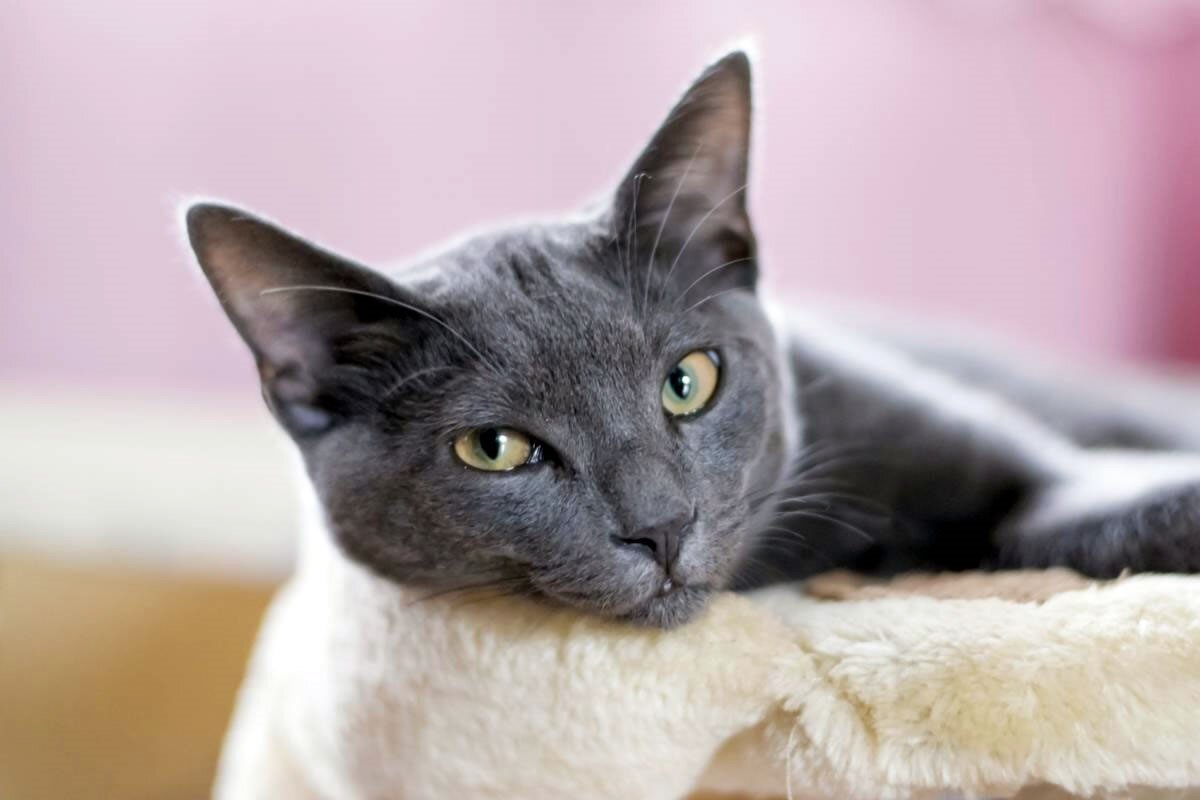 Корат – Это редкая порода кошек из провинции Накхонратчасима́, Таиланд. Первая упоминание о этой породе появилось в «Книге кошек со стихами», выпущенной в период 1350-1767г в Сиаме. Эта книга представляет семнадцать кошек «удачи» из Таиланда, включая Корат, и в настоящее время находится в Национальной библиотеке Бангкока. Другие упоминания о Корате датируются 14 веком. Внешний Вид Визуально – эта порода сильно похожа на «Русскую голубую кошку». по окрасу, но при ближайшем рассмотрении у них очень много отличий. Корат имеет уникальный серебристо-синий цвет, который придает ему сияющий блеск. Цвет, по-видимому, поглощает свет, создавая эффект «ореола». Их шерсть не выпадает, когда их гладят, поэтому большинство людей, страдающих аллергией на кошачьи волосы, считают их близость терпимой. Корни шерсти светлее, а цвет увеличивается в оттенке вверх по волосу до более глубокого синего цвета, пока он не достигнет серебристых верхушек. Серебряные волосы более распространены на морде и пальца