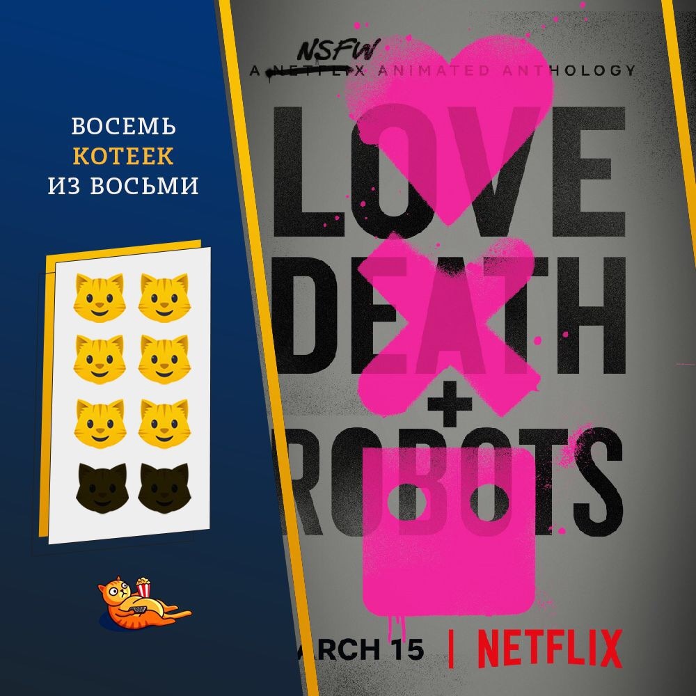 ⠀ Один из самых обсуждаемых проектов последних пары недель. И вчера досмотрев все возможные видяши на YouTube, я решила рискнуть и посмотреть ЛСиР. ⠀ Необычный формат. На всяяяякий случай расскажу, что там необычного в формате (вдруг вы постигали дзен последние 2 недели). ЛСиР - это альманах, состоящий из 18 анимационных картин, в которых присутствуют любовь, смерть и роботы (где-то все вместе, где-то по отдельности). ⠀ Зарисовки от 11 до 18 минут. Удивительно, как за такие короткие промежутки создателям удаётся показать полноценную историю с раскрытием персонажей и характеров. Кто-то может с этим поспорить, но независимы авторам удаётся сделать то, что не у всех получается при многомиллионном бюджете и хронометражем до бесконечности и обратно. ⠀ Сюжеты максимально разные. Есть цепляющие, а есть довольно проходные. Но вы точно найдёте хотя бы 1 эпизод, который вас зацепит. Мне понравилось около 5, но текст о них займёт много места и будет сплошной спорйлер. ⠀ Итог: Абсурдно, смешно, ст