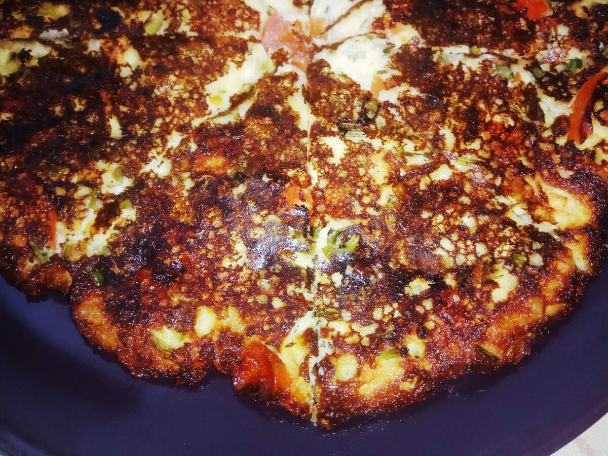 Белковый удар! Такие лепешки станут отличным полезным перекусом или полноценным ужином. Для остроты сегодня я использую маринованный перец халапеньо. Благодаря жгучему ферменту этот перчик улучшает пищеварение, борется с инфекциями, обладает болеутоляющим и антидепрессивными свойствами. Принято считать, что острые специи (а именно капсаицин в их составе) значительно ускоряют метаболизм, но на самом деле они повышают обмен веществ не больше чем на 5 %. Перец халапеньо поможет разнообразить меню и спасет от недостатка вкуса некоторых продуктов. Подготовим ингредиенты на 2 большие лепешки: В глубокую емкость выкладываем творог. Разминаем вилкой. Добавляем яйца и муку, перемешиваем. Сыр трем на крупной терке, добаляем его в смесь. Вливаем молоко, мешаем. Нарезаем помидоры, зелень и халапеньо, добавляем в смесь. Перемешиваем. Пробуем, солим, перчим по вкусу. Смазываем сковороду подсолнечным маслом, ставим на максимальный огонь. Выкладываем половину теста в сковороду, разравниваем.